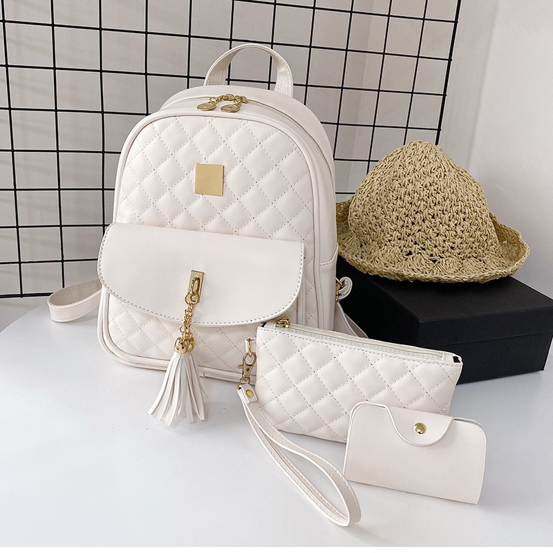 Women Composite Bag High Quality Pu Leather Backpack School Bags Black Backpack Mini Purse Phone Bag Three-piece Set Kawaii Bag