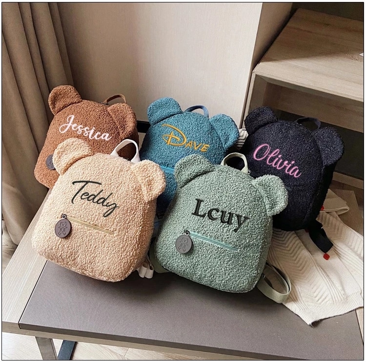 Personalized Embroidery Toddler Backpack Lightweight Plush Bear Preschool Bag Kids Custom Name Backpack for Boys Girls Ladies