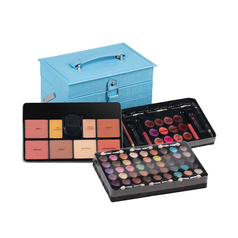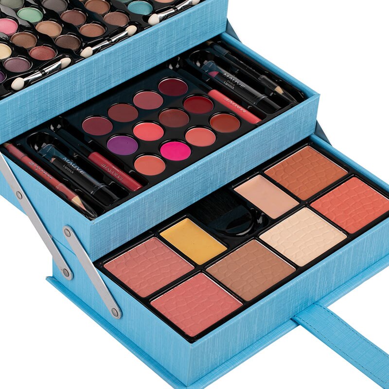 DUER LIKA Blue Pattern Portable Professional 45 Color Eye Shadow Lip Enamel Blush Makeup Foundation Makeup Powder Set Eye Shadow