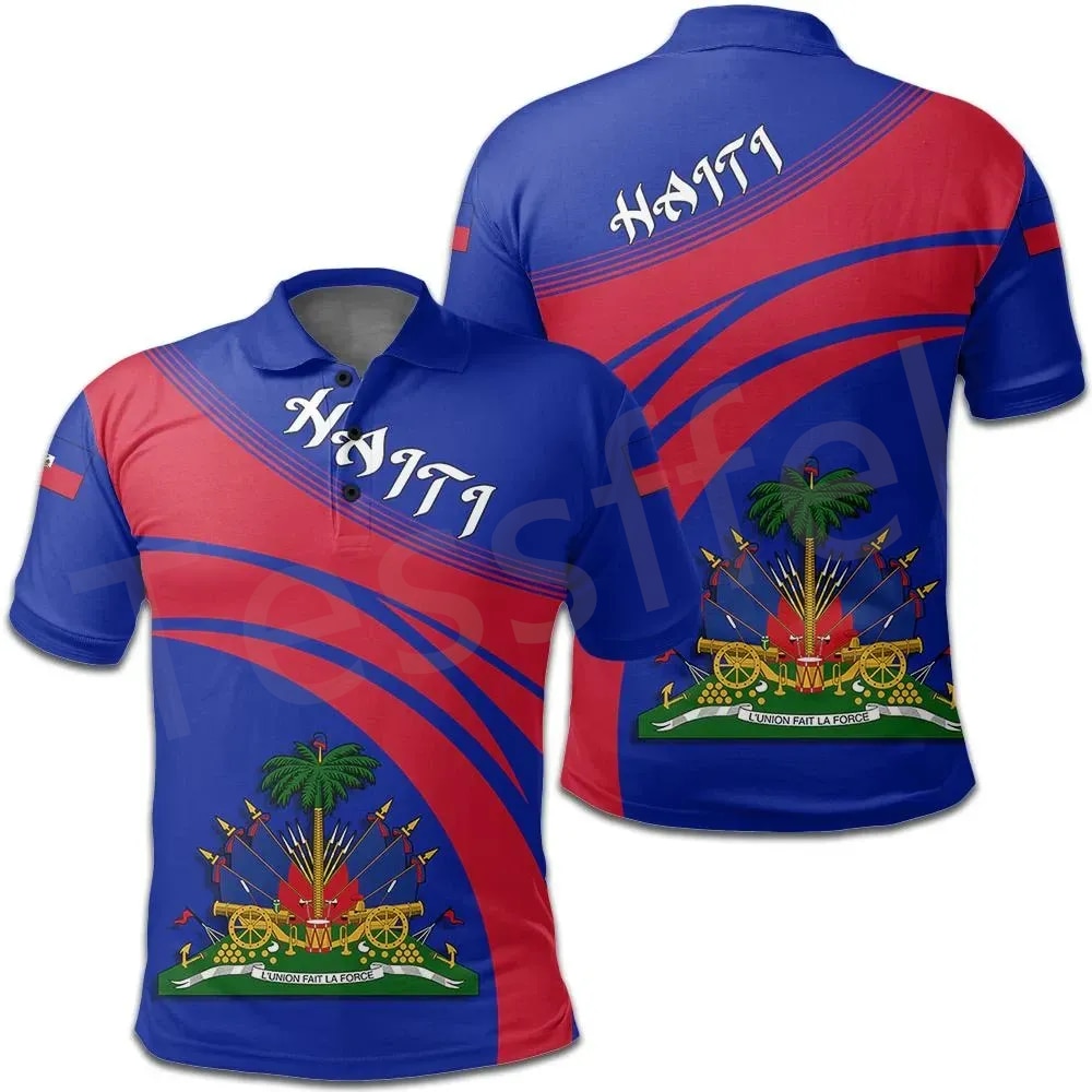 Newest Country Flag Caribbean Sea Haiti Island Retro 3DPrint Men/Women Summer Casual Funny Polo Shirts T-Shirt Short Sleeves X1