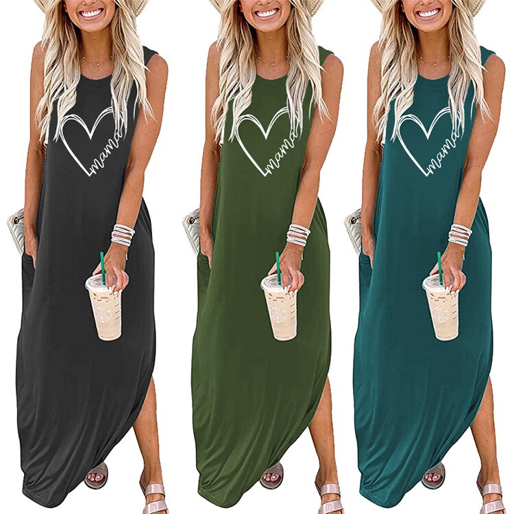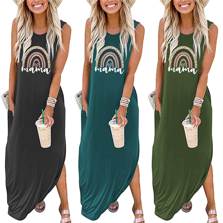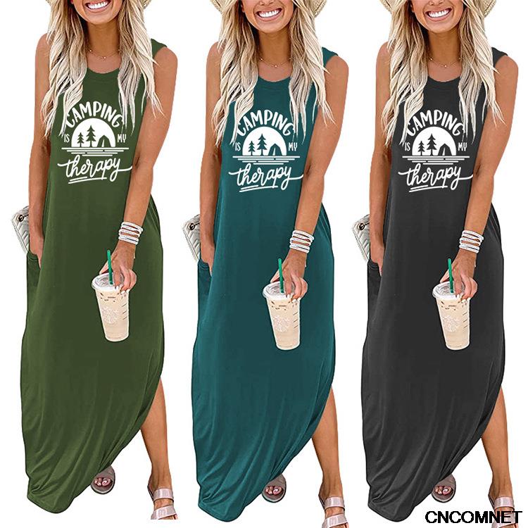2022 Summer Dress Women's Bohemian Sundress Sleeveless Letter Printed Maxi Long Dress New Casual Loose Party Tanks Vestido