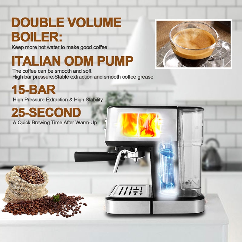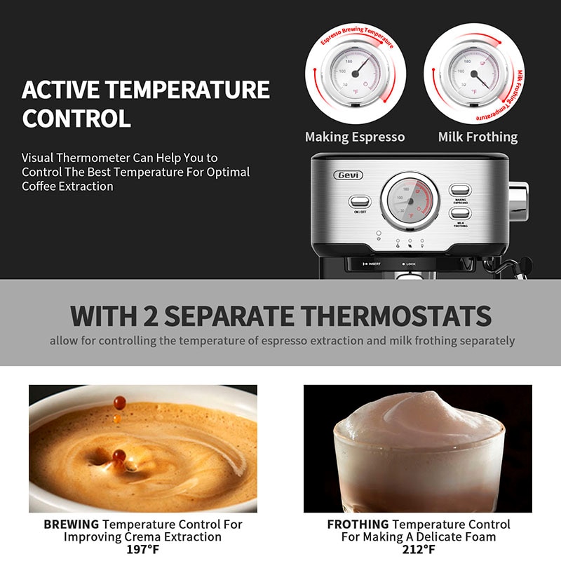 Gevi Espresso Machine 15Bar Coffee Machine Semi-automatic Household Coffee Maker with Foaming Milk Frother Wand 1100W GECME403-U