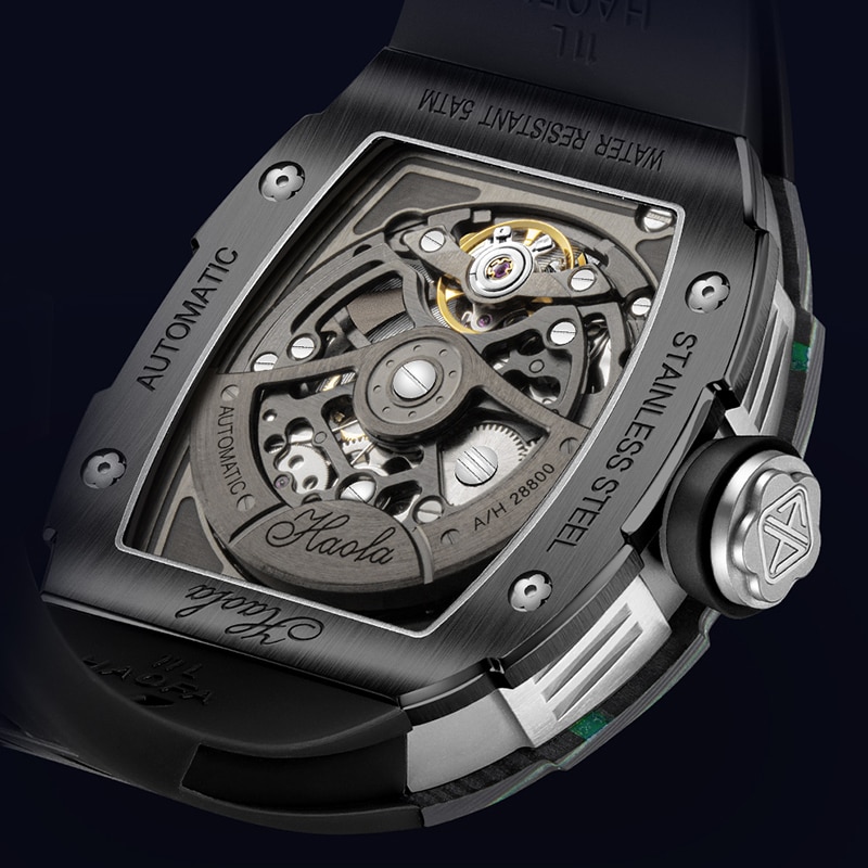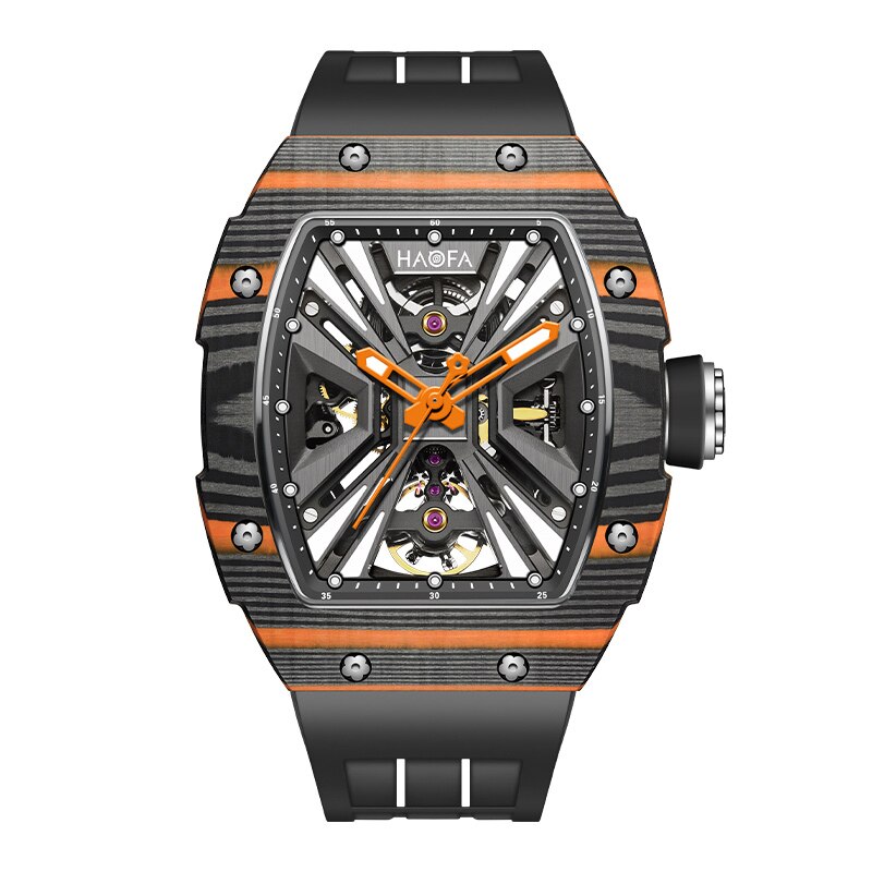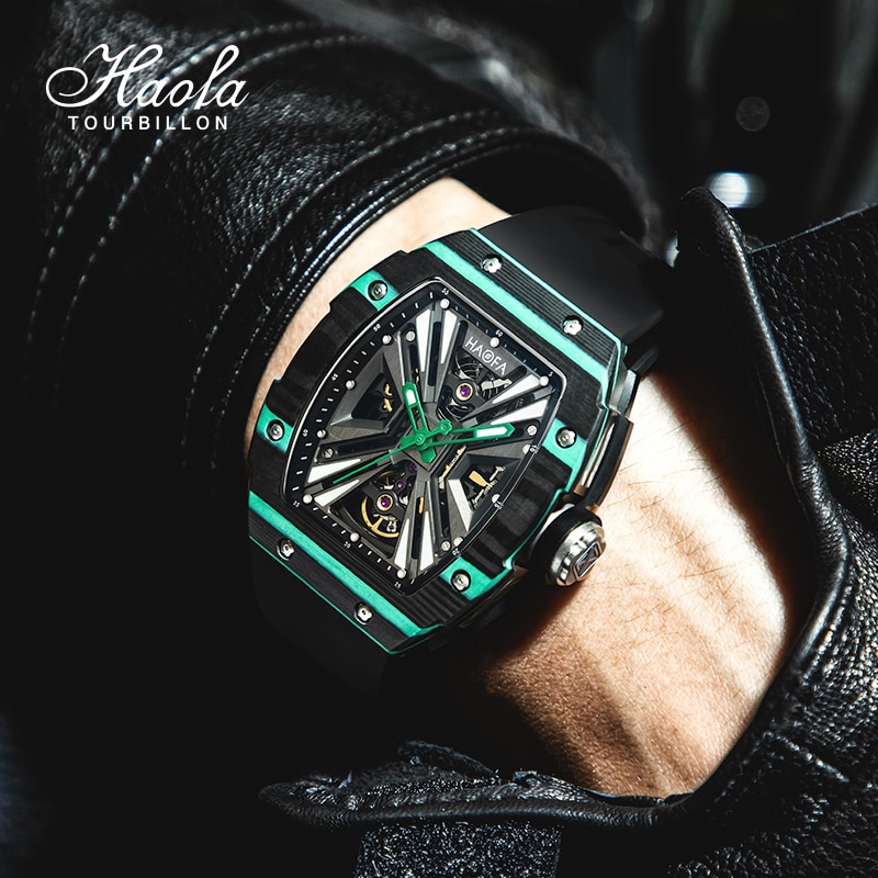 Haofa Automatic Mechanical Skeleton Men Watch Fashion Luminous Automatic Carbon Fiber Watches For Men Power Reserve 80H Luxury