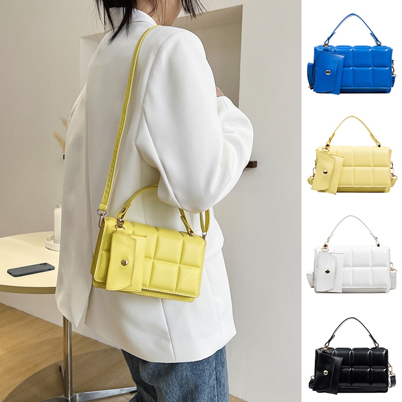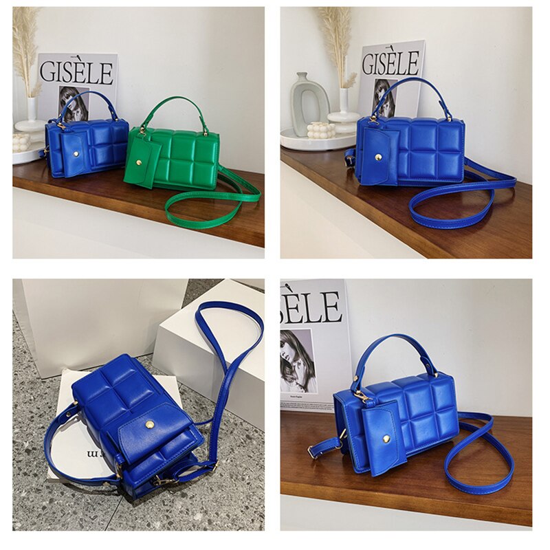 2022 New Female Small Green Handbag Designer Yellow Leather Shoulder Bag with Handle Blue Purse Crossbody Bag for Women