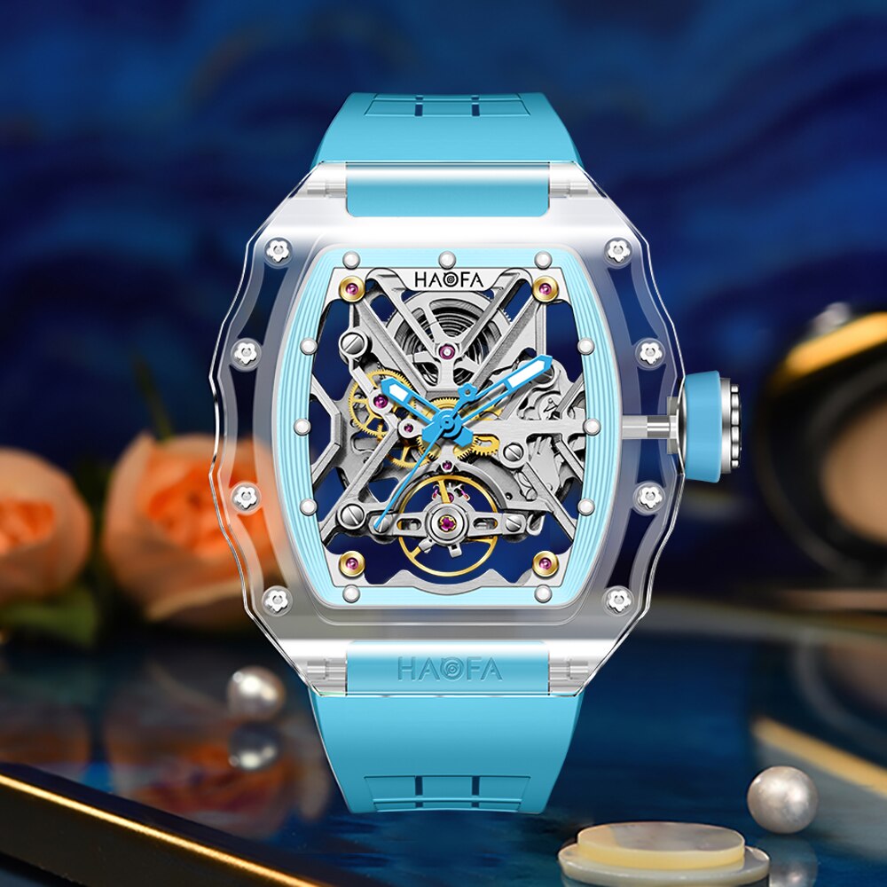 Haofa Transparent Crystal Automatic Mechanical Watches for Men Luxury Double-Sided Hollowing Waterproof Luminous Mens Watch 2202