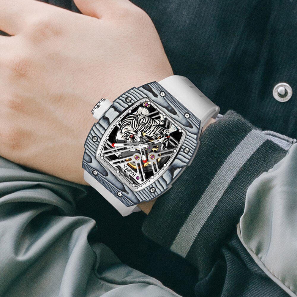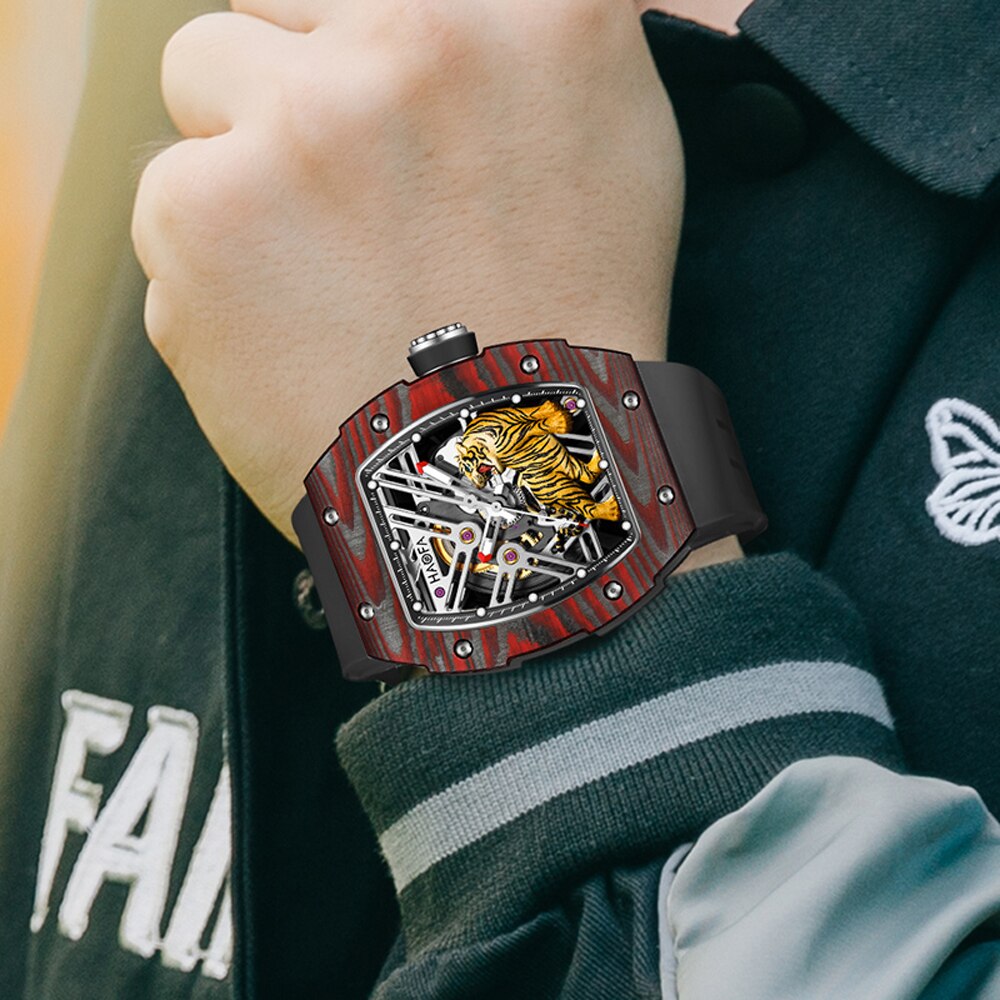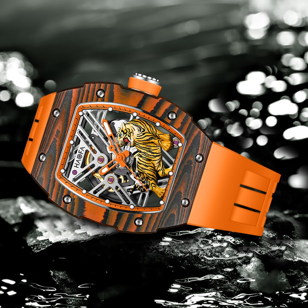 Haofa Skeleton Automatic Mechanical Watch for Men 3D Tiger Carbon Fiber Watch Sapphire Luminous Waterproof Men Watch 1973