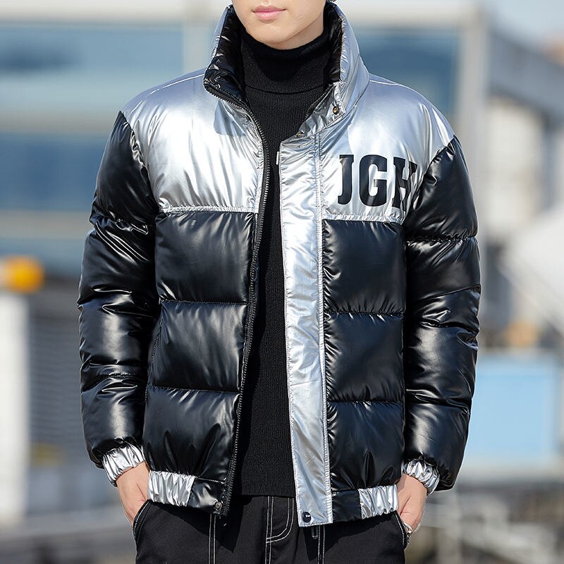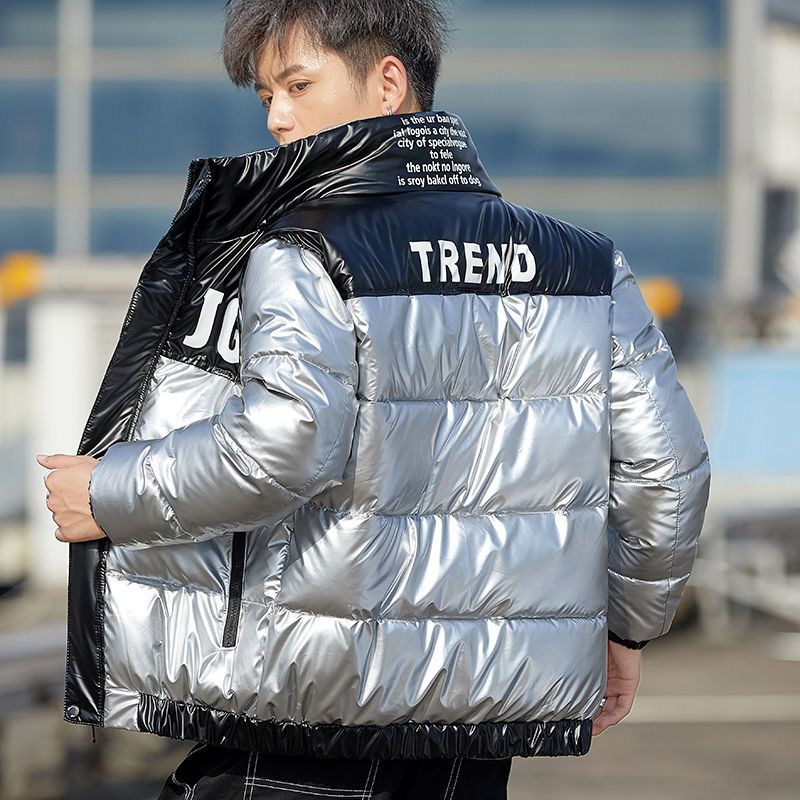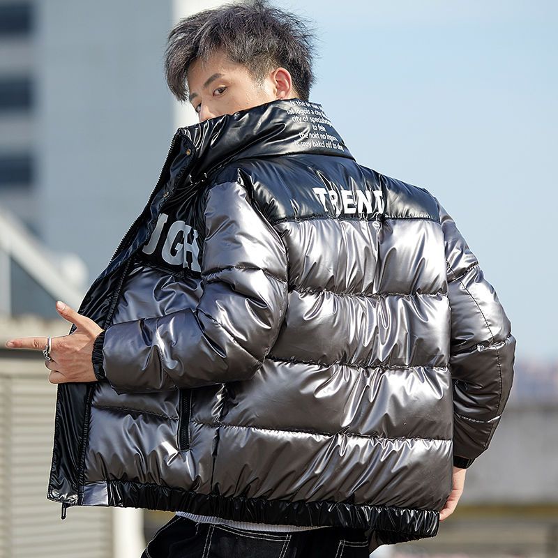 Winter men's bright leather thermal cotton clothing fashionable brand leisure students trendy and thickened cotton coat youth wi