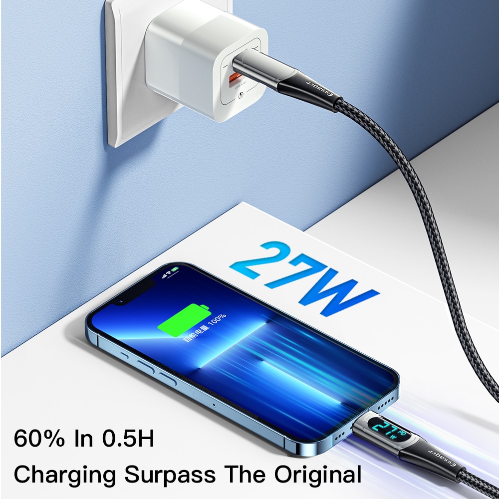 ESSAGER 20W PD USB C Cable Fast Charging Cable for iPhone 14 13 12 Pro Max XR Digital Display Mobile Phone Data Cord for iphone