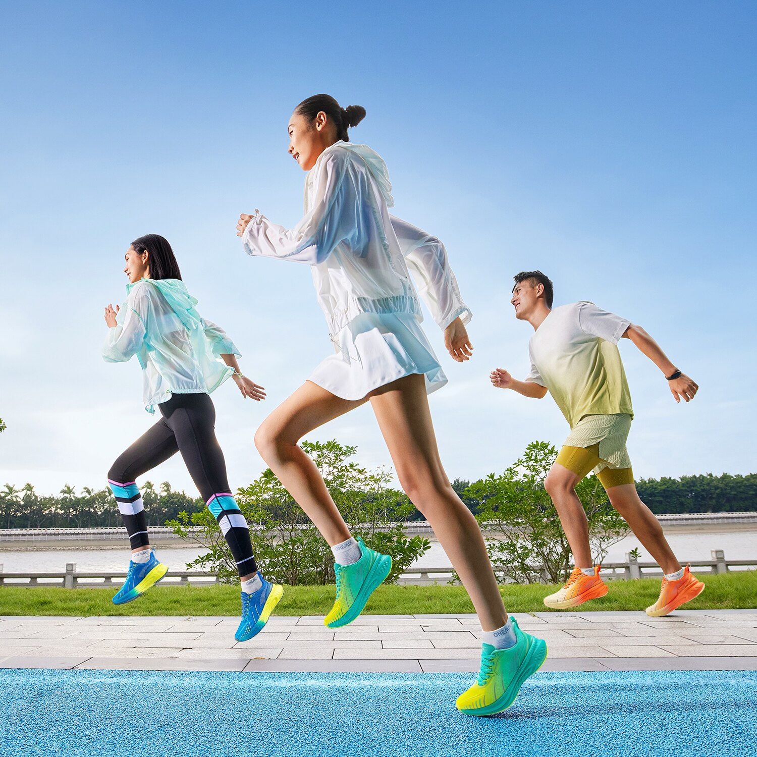 Bumper Elite 3.0 combines the full-length vacuum foam midsole with an carbon fiber plate unit embedded in the arch of foot,it caters to all types of athletes and provides a leg-saving landing as well as a responsive and positive toe-off experience.
