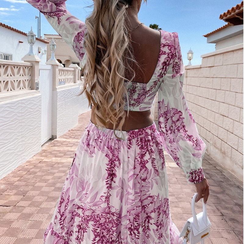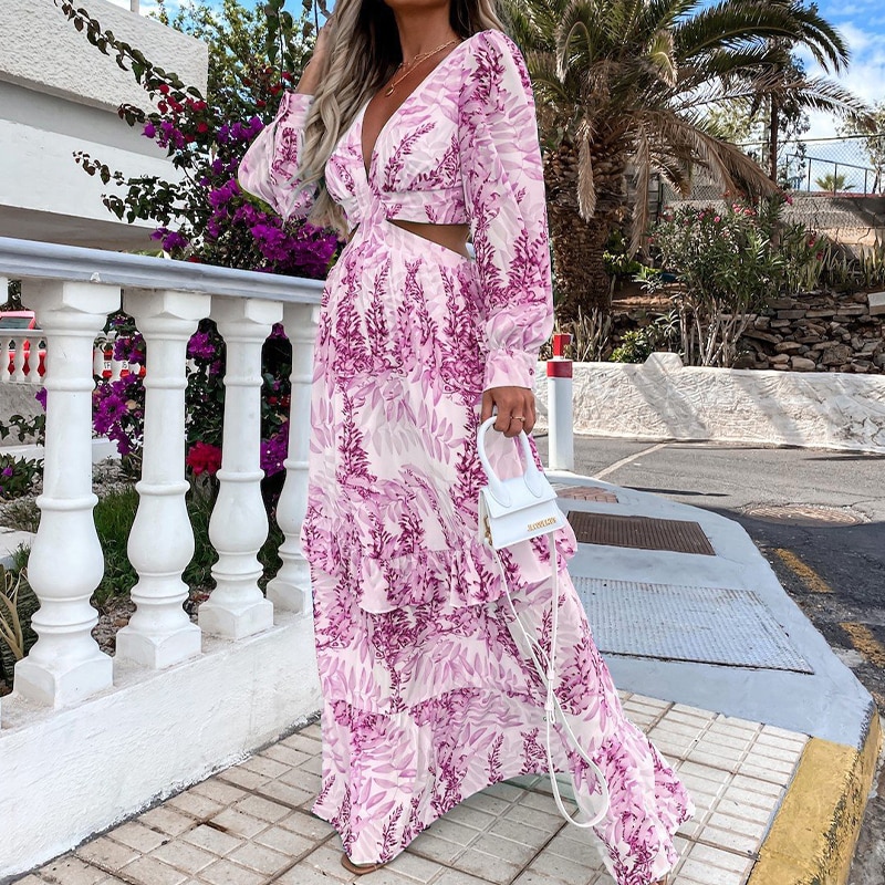 Women Tunic Beach Cover Up Dress 2023 Summer V-Neck Backless Hollow Out Lantern Sleeve Long Dresses Female Club Party Maxi Dress