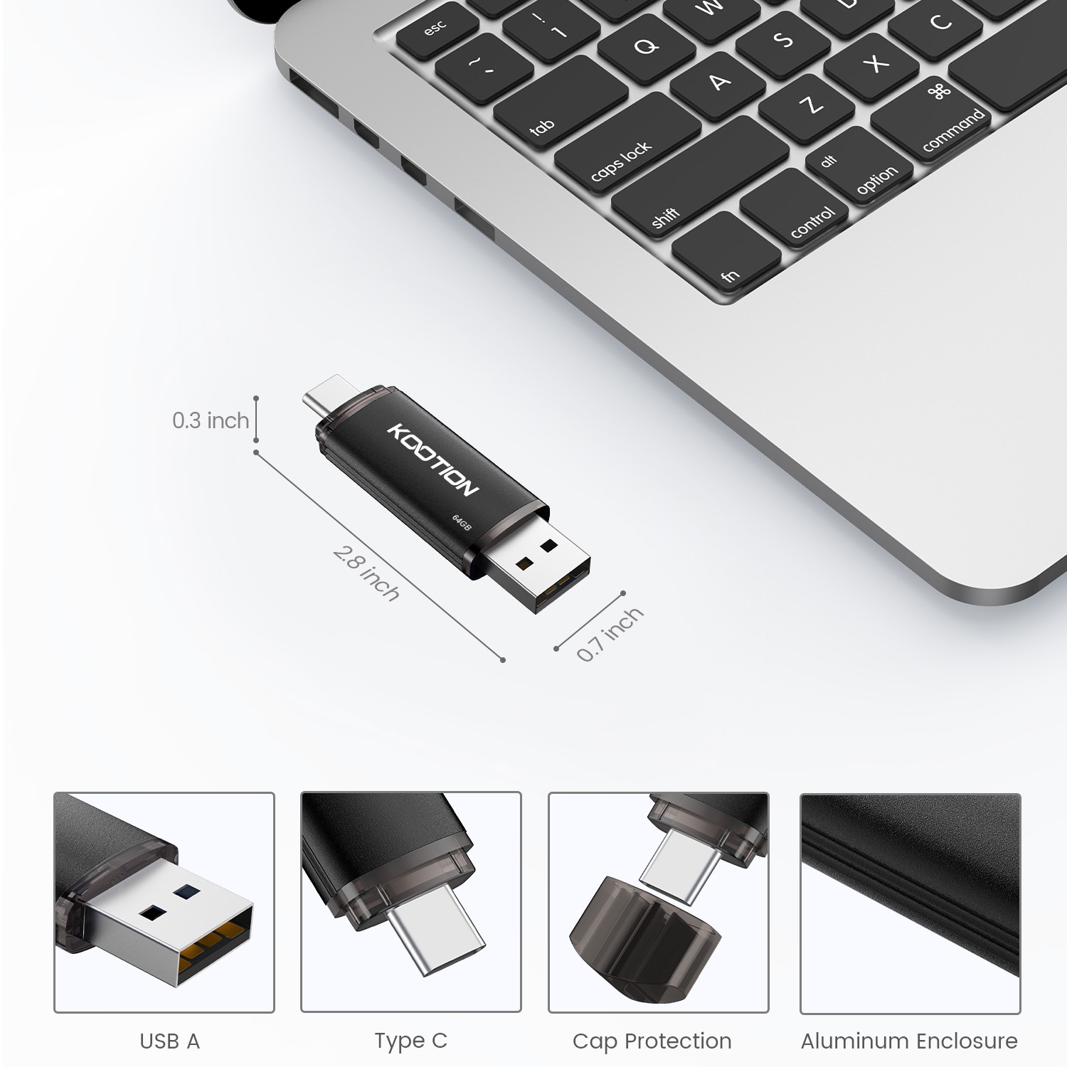 KOOTION U209 32GB 64GB 128GB USB Type-C Flash Drive Pen Drive USB A + USB C OTG Pendrive for Android Smartphone Computer Laptop
