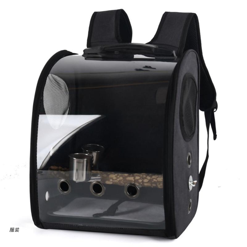 D0UD Parrot Backpack Carriers Bag Pet Bird Bubble Backpack Transparent Travel Cage with Stand Perch Cup for Travel Hiking