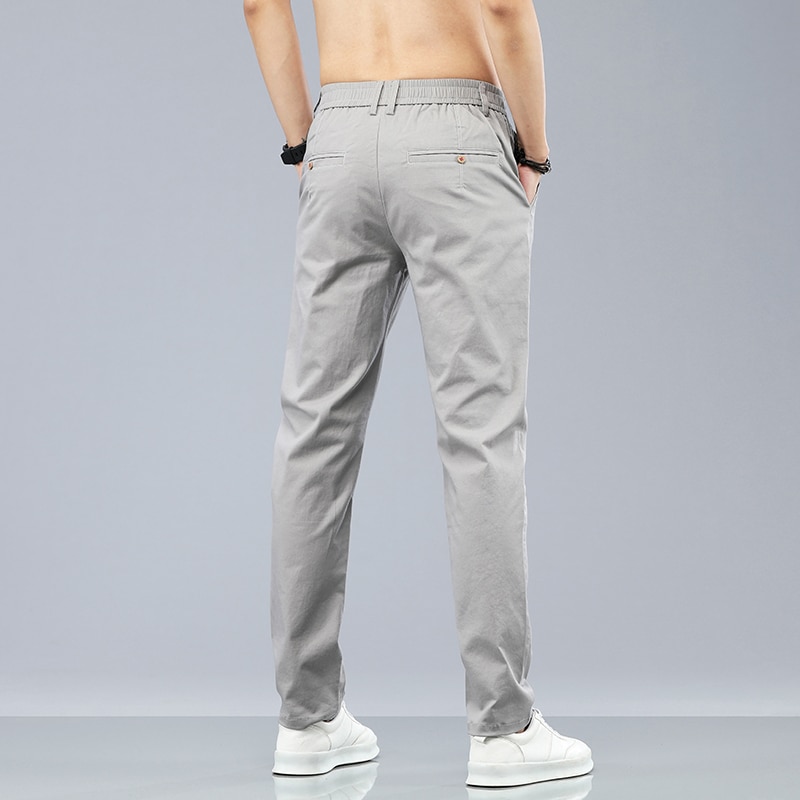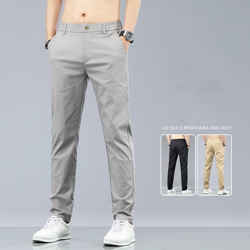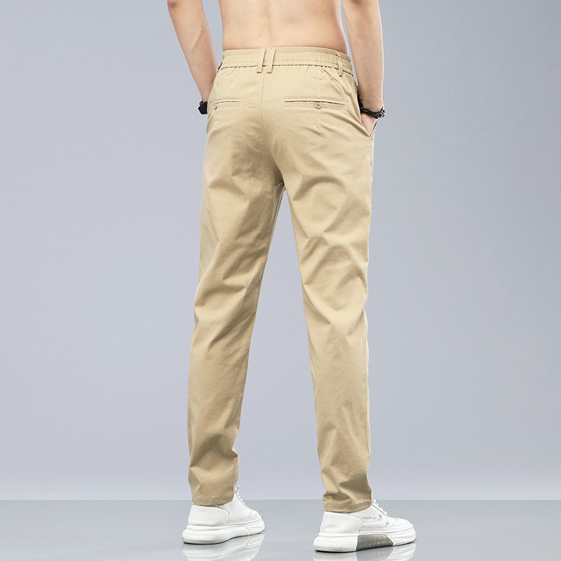 Spring Summer cotton Men Casual Pants Elastic Waist Business Korean Fashion Straight Classic Solid Color Trousers Black Khaki