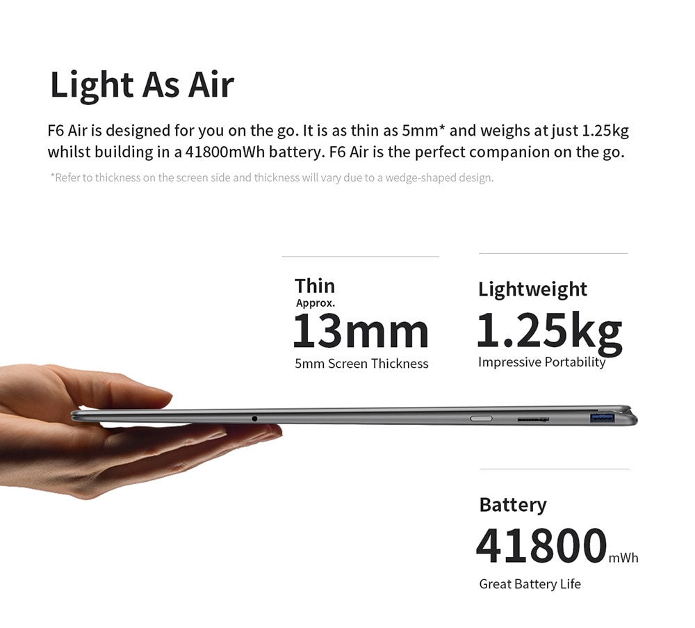 Teclast F6 Air 13.3Inch 1920X1080 Laptop Windows 10 8GB RAM 256GB SSD Intel Gemini Lake Refresh 1.25KG Light 2.4G 5G Notebook