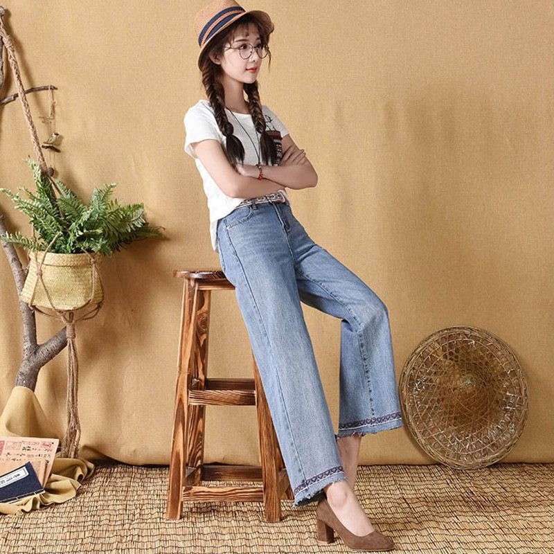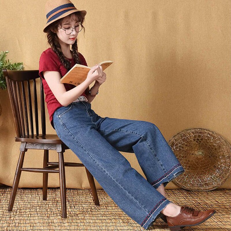 Vintage Ankle-length Wide Leg Jeans Spring Fall Loose Fashion Streetwear Denim Pants Korean Casual Women's Straight Trousers