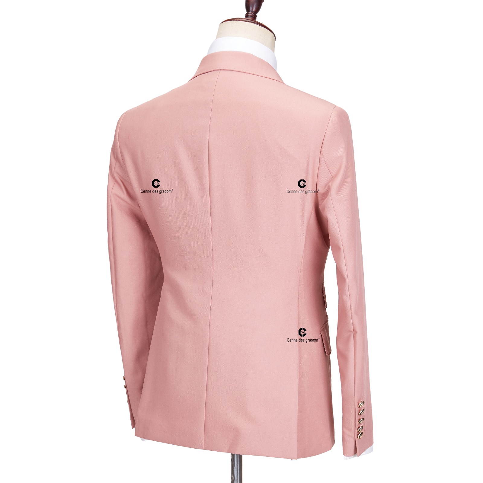 Cenne Des Graoom 2023 New Elegant Men Suit Double Breasted Two Pieces Set Slim Fit High Quality Wedding Party Costume Pink