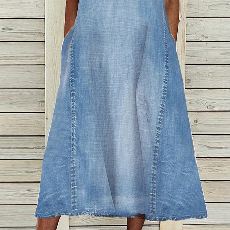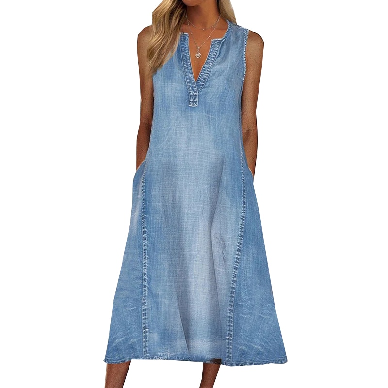 Midi Sundress Denim Jeans Tank Dress T-shirt Dress Women Casual Loose V-Neck Sleeveless