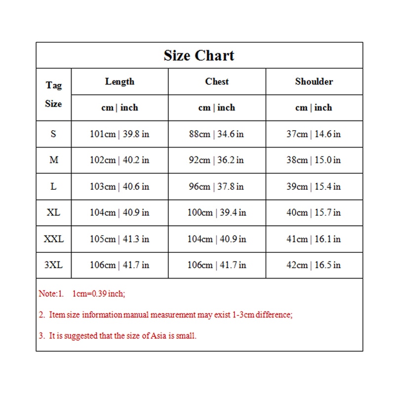 3.Size doesn's fit all.Please carefully check size chart and select the size based on your real size.