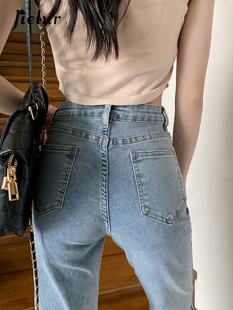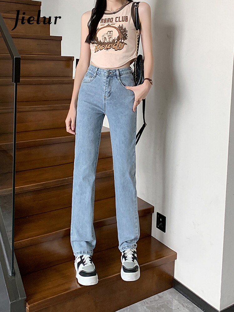Jielur Light Blue Denim Pants Narrow Jeans Women Spring Korean New Fashion High Waist Slim Straight Jeans Female Simple Basic