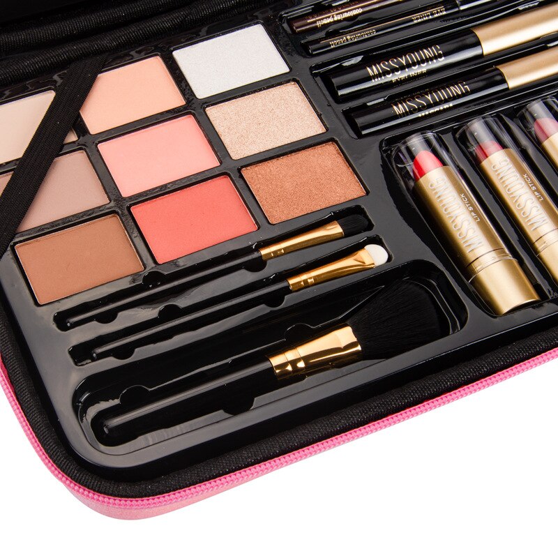 Missyoung Makeup Set Professional Eyeshadow Eyeliner Eyebrow Pencil Blush Lip Glaze High Gloss Repair All-in-one Gift Box
