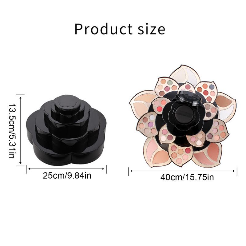 • The all-in-one makeup kit contains highlighters, 45-color eye shadows, contouring powder, blush, BB cream, etc. Our unique flower makeup palette can be expanded to reveal a 3-layer makeup tray. The soft texture of the makeup palette can help you easily create a beautiful makeup look. A perfect holiday gift for women, girls, and teens.