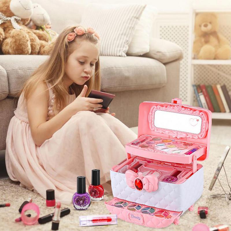 • Easy to Store - Designed with a cute storage box, these make up kits for girls are portable and easy to carry. All the makeup in this kit can be easily stored in the box for easy carrying. And during this process, kids can get to learn how to put things in order.