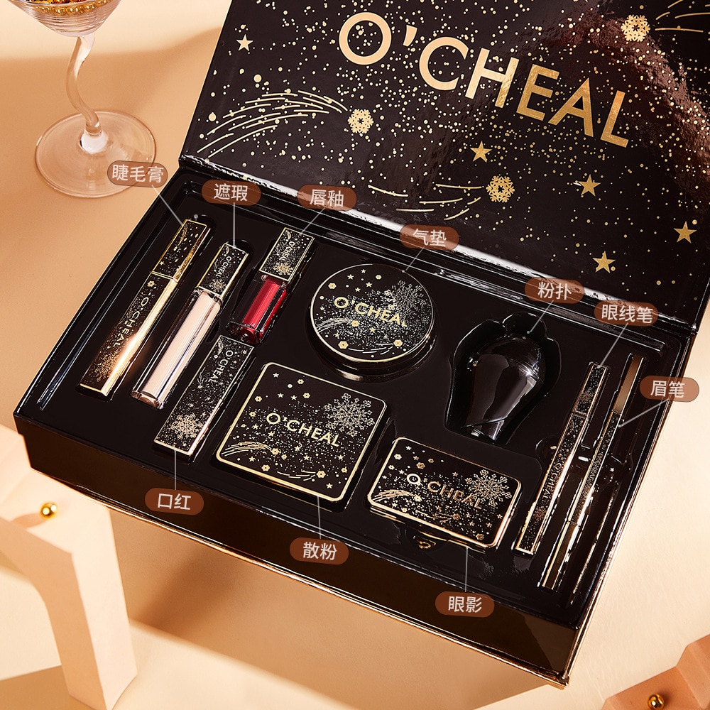 Starry Sky Beauty Makeup Cosmetics 10Pcs Gift Box Set Mushroom Air Cushion Setting Powder Lipstick Highlighter caja misteriosa