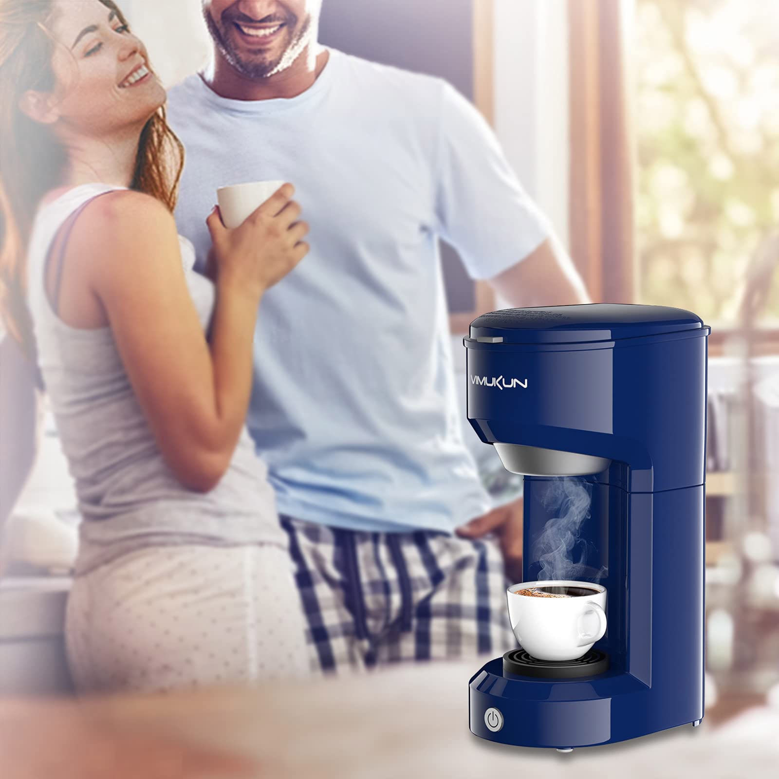 Single Serve Coffee Maker Coffee Brewer 6 to 14oz Compatible with K-Cup Single Cup Capsule with Reservoir, Mini Size,Blue