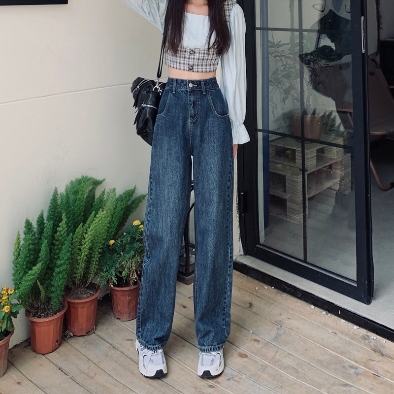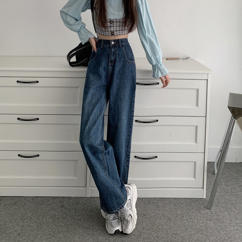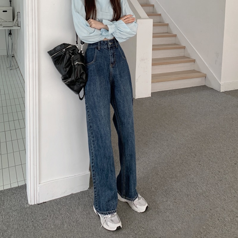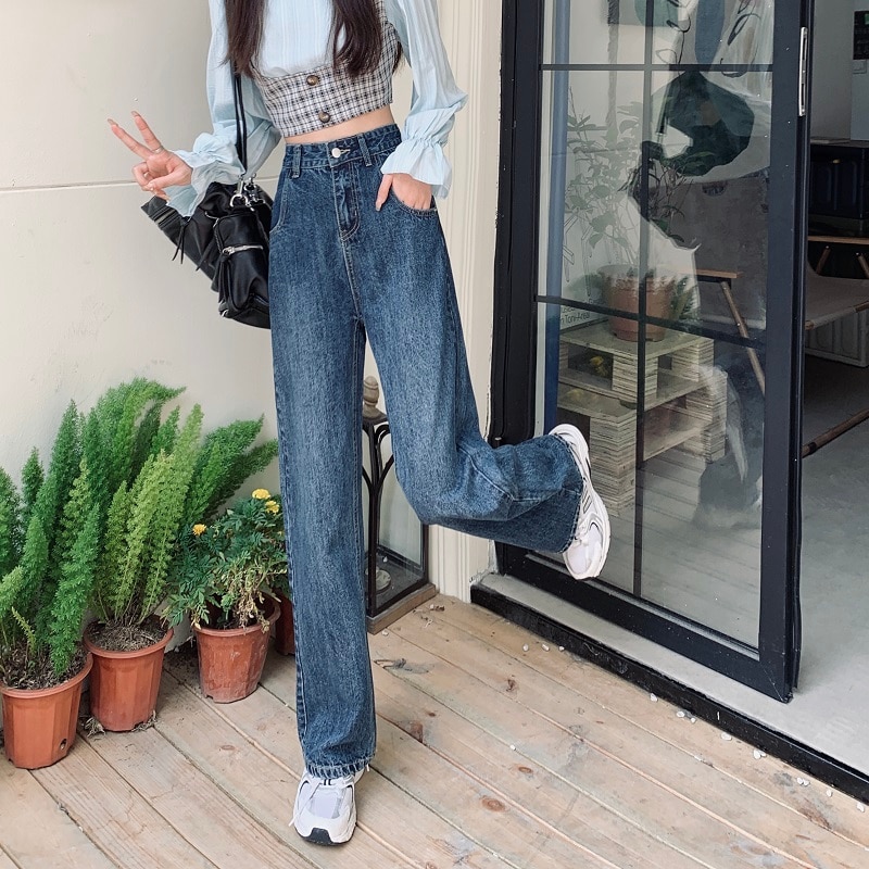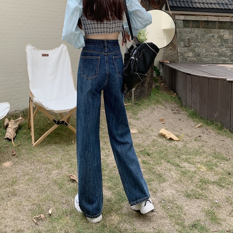 N3796 High-waisted wide-leg jeans women's new loose and thin all-match drape straight long trousers jeans