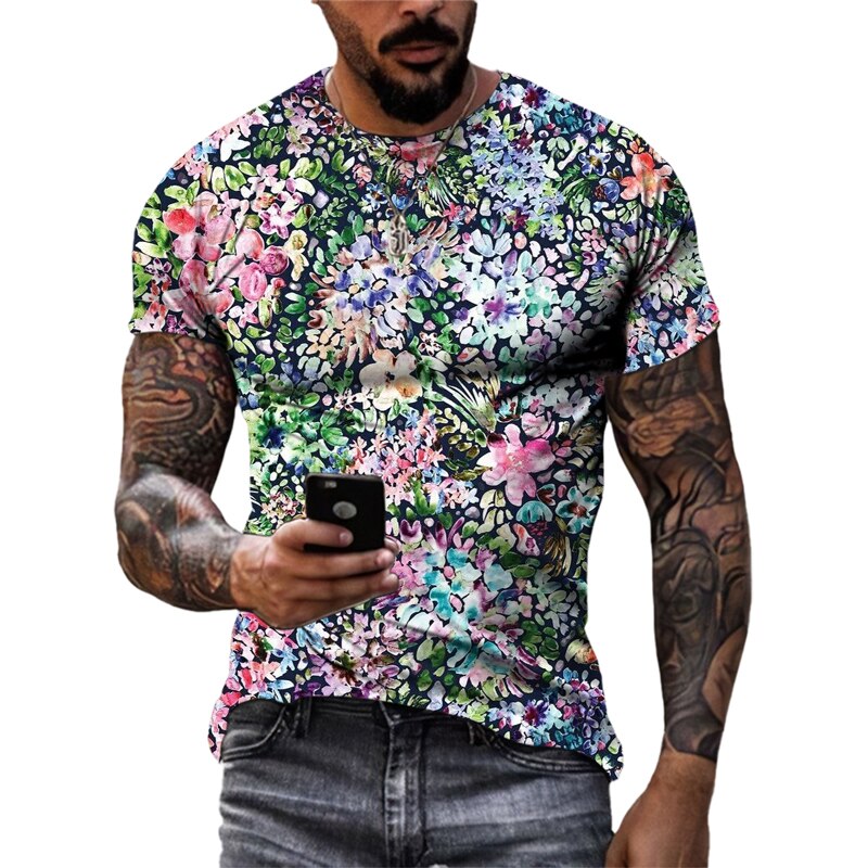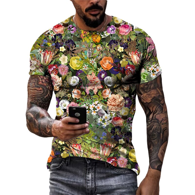 Hip Hop Fashion Plant Flower Neutral T-shirt Summer 3D Street Style Trend Men's Crewneck Short Sleeve Printed Large Size Shirt