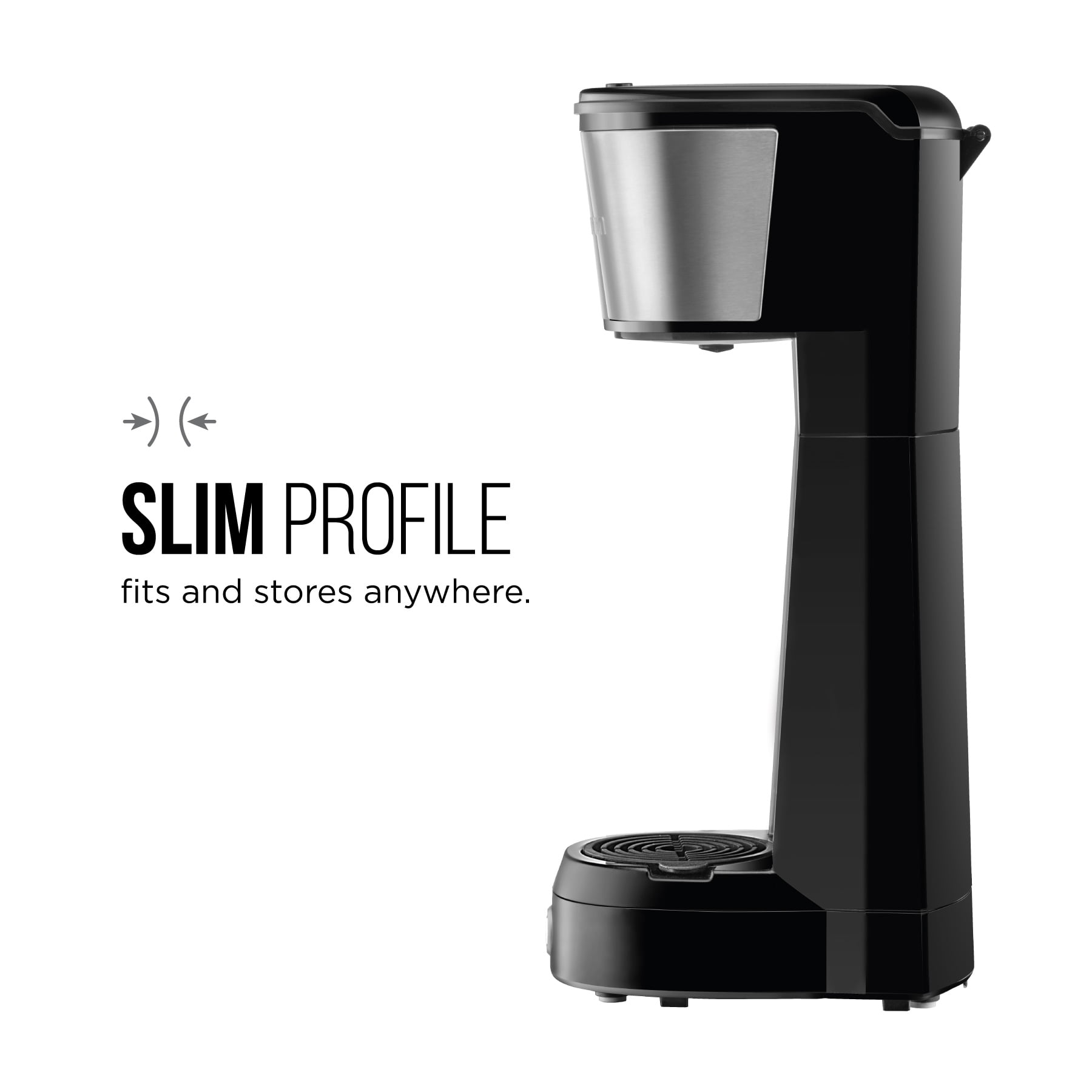 • The sleek, compact design takes up little counter space and can be stored easily, making it the perfect coffee machine for any size kitchen, dorm, office desk, or hotel room. Break out your favorite travel mug! This personal coffee maker is designed to fit most 14 oz. travel mugs - great for frequent travelers and morning commutes. (Travel cup is not included with the coffee maker.)