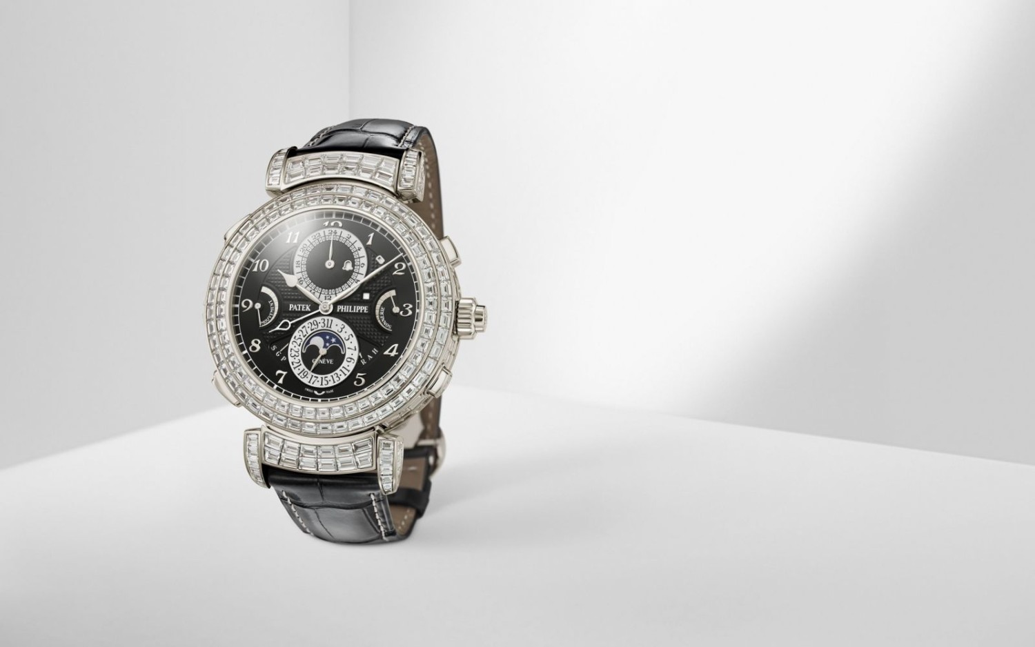 Chuyển động cơ học bằng tay. Caliber 300 GS AL 36‑750 QIS FUS IRM. Chuông của Patek Philippe Grandmaster. Đồng hồ đeo tay có thể đảo ngược hai mặt. Sonnerie lớn và nhỏ. Bộ lặp phút với tiếng cồng cổ điển. Hiển thị chế độ tấn công (S G P). Báo động với thời gian đình công. Chỉ báo bật/tắt báo động. Bộ lặp ngày. Chỉ báo dự trữ năng lượng của chuyển động và đòn tấn công. Chỉ báo cách ly đình công. Múi giờ thứ hai. Chỉ báo ngày/đêm của múi giờ thứ hai. Lịch vạn niên tức thời. Thứ, ngày (trên cả hai mặt số), tháng, chu kỳ năm nhuận bằng kim. Hiển thị năm chữ số trong một khẩu độ. Các giai đoạn của mặt trăng. Mặt số phụ 24 giờ và phút. Chỉ báo vị trí núm vặn (R A H).