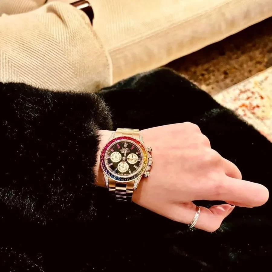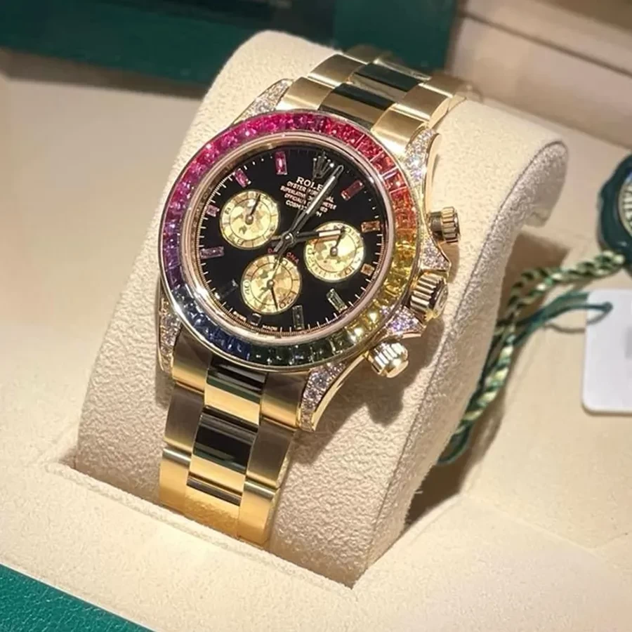 Phần dây đồng hồ Rolex 116598RBOW cũng được thiết kế từ vàng vàng 18K cao cấp. Dây đeo Oyster 3 mối nối với mối nối ở giữa được đánh bóng và tương phản rõ rệt với 2 mối nối 2 bên được chải xước mờ. Phần khóa được trang bị khóa Oysterlock 2 chốt, giúp người dùng tránh tình trạng rơi đồng hồ khi không để ý.