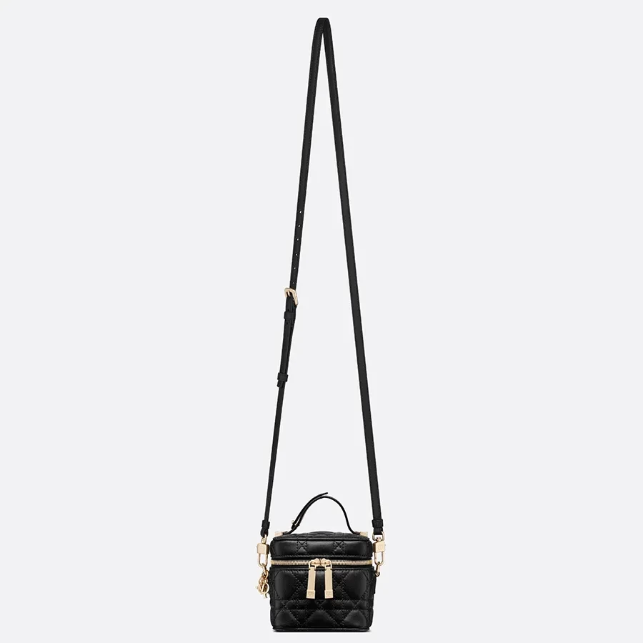Túi Xách Tay Nữ Dior Vanity Micro Case S0935ONMJ Màu Đen được chế tác bằng da cao cấp với đường khâu Cannage cùng điểm nhấn khóa kéo kim hoàn thiện với tone màu vàng nhạt sang trọng.